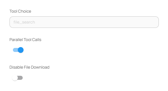 | **Tool Choice**           | 사용할 툴을 직접 지정하거나 자동 선택하도록 설정. 예: `file_search` 등 |