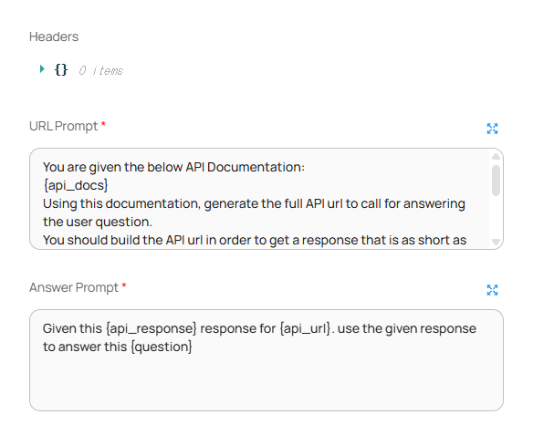 | **URL Prompt**    | 주어진 API 문서를 기반으로 호출할 URL을 생성하는 프롬프트. 아래 예시 참고 |