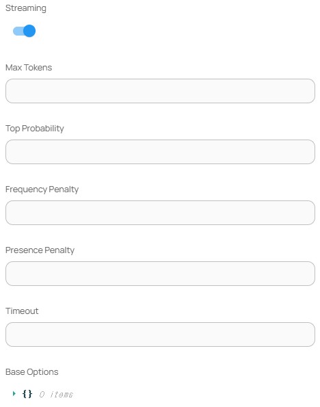 | Streaming         | 응답을 스트리밍 방식으로 받을지 여부 (기본값: true)  |