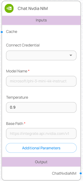 ChatNvdiaNIM 노드는 NVIDIA의 NIM(NVIDIA Inference Microservices) 플랫폼을 통해 Microsoft, Mistral, Meta 등 다양한 파트너사의 LLM을 호출하는 Chat Model 노드입니다. 고성능 추론 인프라 위에서 다수의 모델을 API 형태로 빠르게 활용할 수 있습니다.&#x20;
