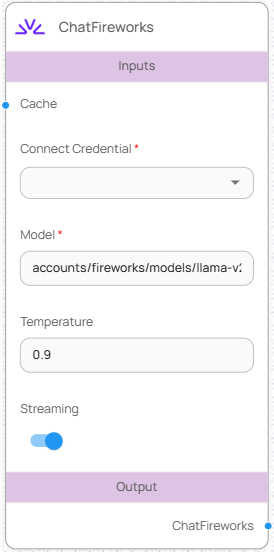 | Connect Credential | Fireworks API Key를 Credential에 등록한 항목                      | 필수    |