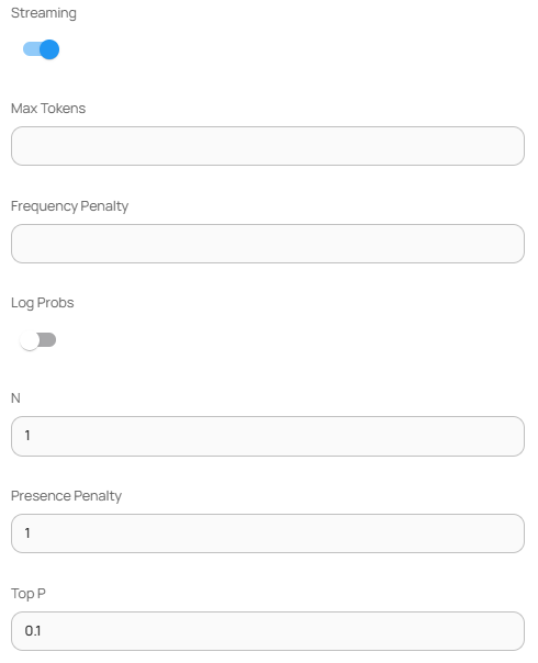 | Streaming         | 응답을 스트리밍 방식으로 수신할지 여부 (기본값: true) |
