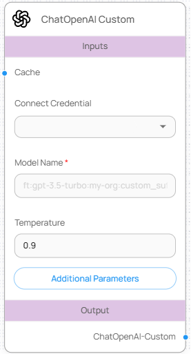 ChatOpenAI-Custom 노드는 OpenAI에서 **Fine-tune한 전용 모델**을 호출하는 Chat Model 노드입니다. 특정 업무 목적이나 도메인에 맞게 학습된 GPT-3.5 기반 커스텀 모델을 활용하여, **정확도 높은 특화 응답 생성**이 가능합니다.&#x20;