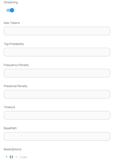 | Streaming         | 스트리밍 응답 여부 (기본값: true)              |