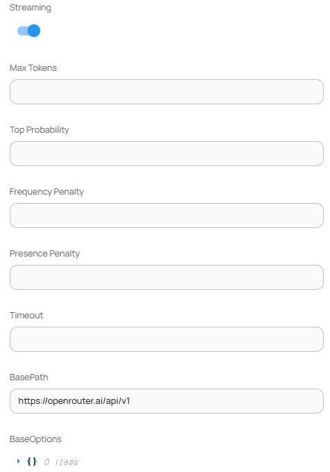 | BasePath          | OpenRouter API 경로 (기본값: <https://openrouter.ai/api/v1>) |