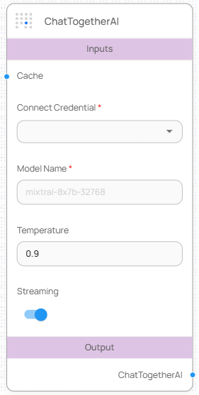 | Connect Credential | Together AI API Key (Credential에 등록된 값) | 필수    |