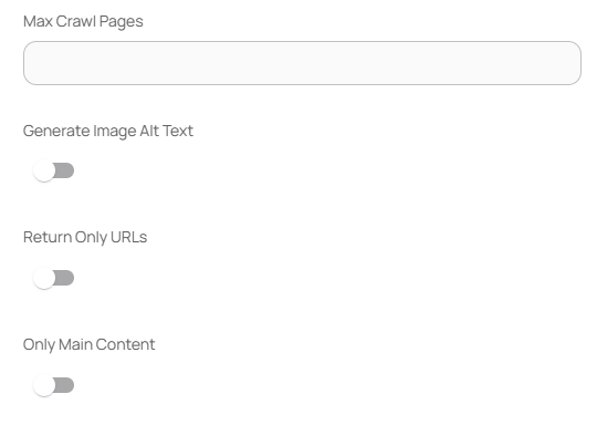 | Max Crawl Pages         | 최대 크롤링 페이지 수 제한 (예: 10, 100)               |
