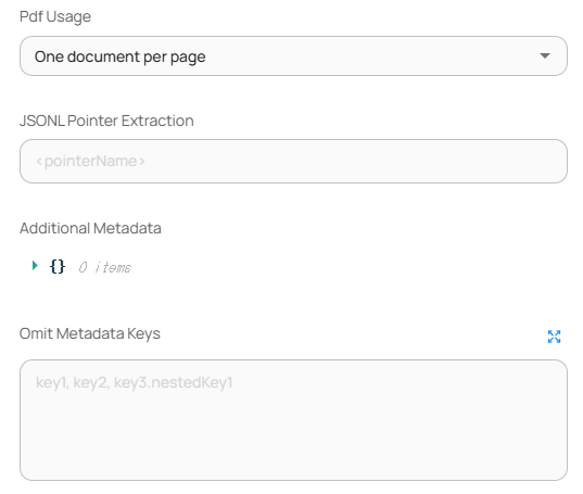 | Additional Metadata      | 로드된 각 문서에 추가할 키-값 메타데이터 설정                                                                                                                |