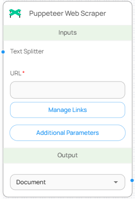 Puppeteer Web Scraper 노드는 Chromium 기반 브라우저 자동화를 통해 지정한 웹 페이지의 콘텐츠를 크롤링하여 문서 객체(Document)로 변환합니다. 렌더링이 필요한 복잡한 웹 페이지에서도 안정적으로 텍스트를 수집할 수 있어 다양한 실무 자동화 시나리오에 활용됩니다.
