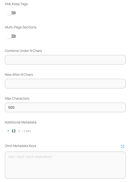 | Max Characters         | Chunk 당 최대 문자 수 (기본값: 500)            |