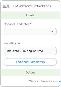 IBM Watsonx Embeddings 노드는 IBM의 Watsonx.ai 플랫폼에서 제공하는 고성능 임베딩 모델(`ibm/slate-30m-english-rtrvr`)을 통해 텍스트 데이터를 벡터로 변환하는 노드입니다. Watsonx의 인프라를 활용하여 안정적으로 벡터 임베딩을 생성할 수 있으며, IBM 생태계 내 보안이 중요한 엔터프라이즈 환경에서 주로 활용됩니다.