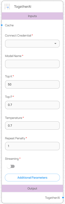 * Connect Credential에 Together API Key를 미리 등록하지 않으면 호출이 불가능합니다.