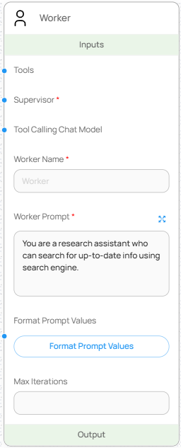 | Max Iterations       | 해당 Worker가 Supervisor 요청에 응답할 수 있는 최대 반복 횟수 (기본값 없음)          |
